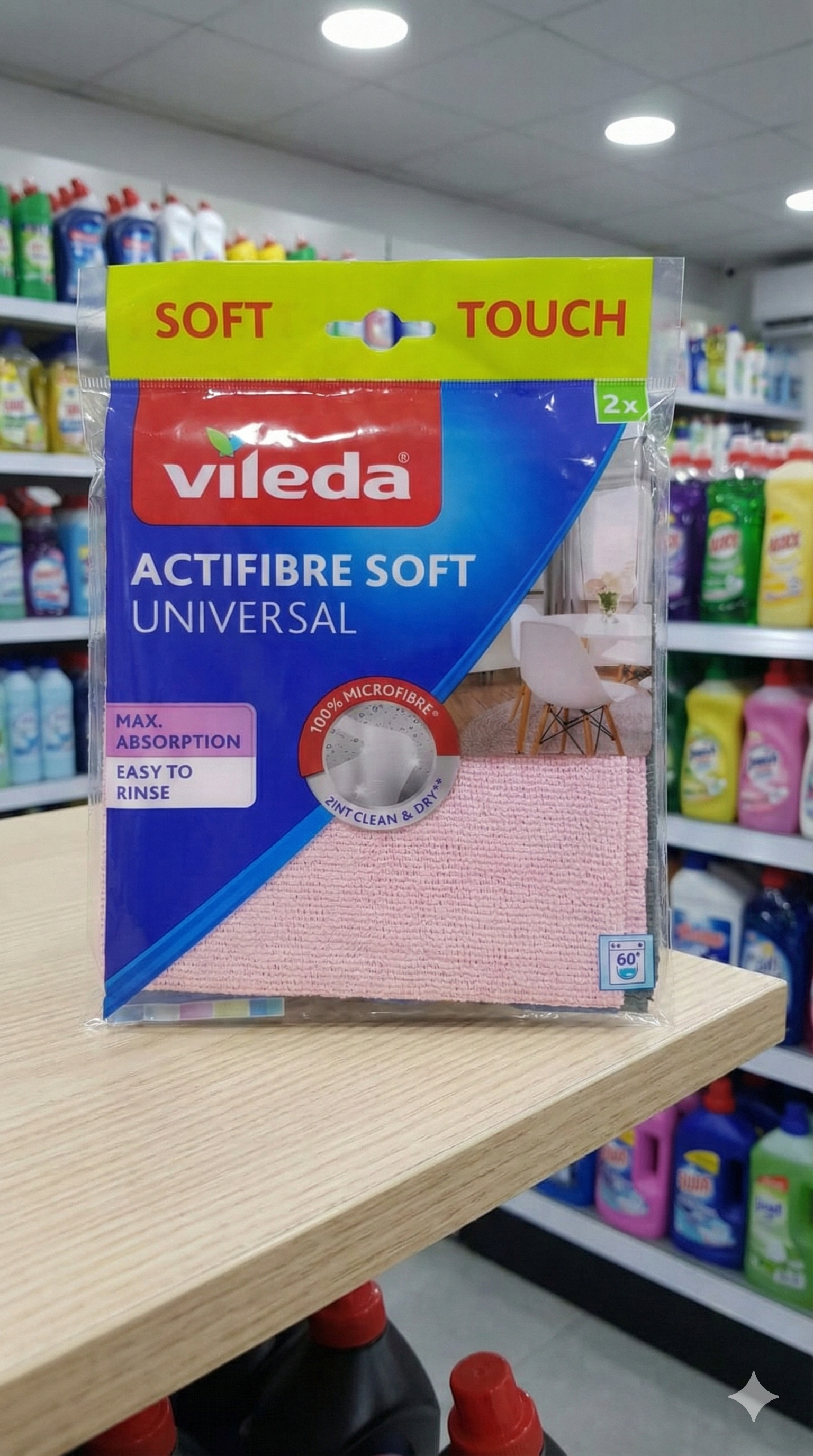 Vileda Actifibre Soft Universal Microfibre Cloth, available as a 2-pack in pink.