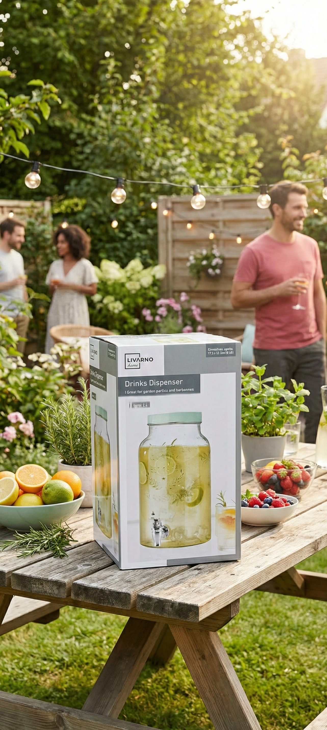 Livarno Home drinks dispenser, suitable for serving beverages at parties and barbecues.